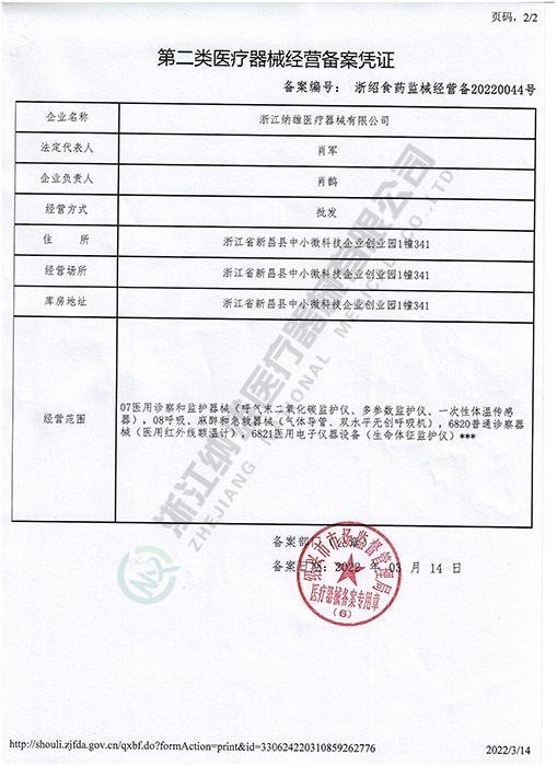 第二類醫療器械經營備案憑證